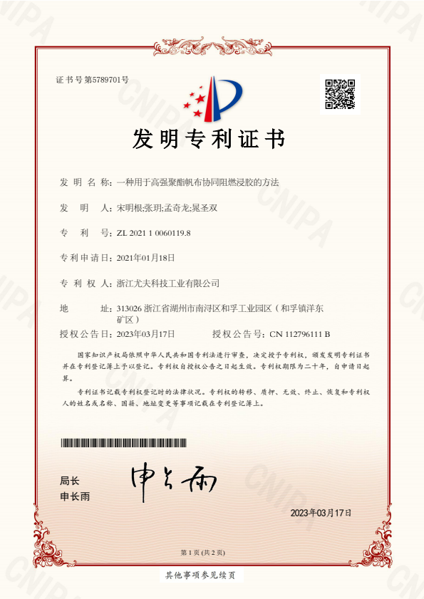 發(fā)明-一種用于高強(qiáng)聚酯帆布協(xié)同阻燃浸膠的方法