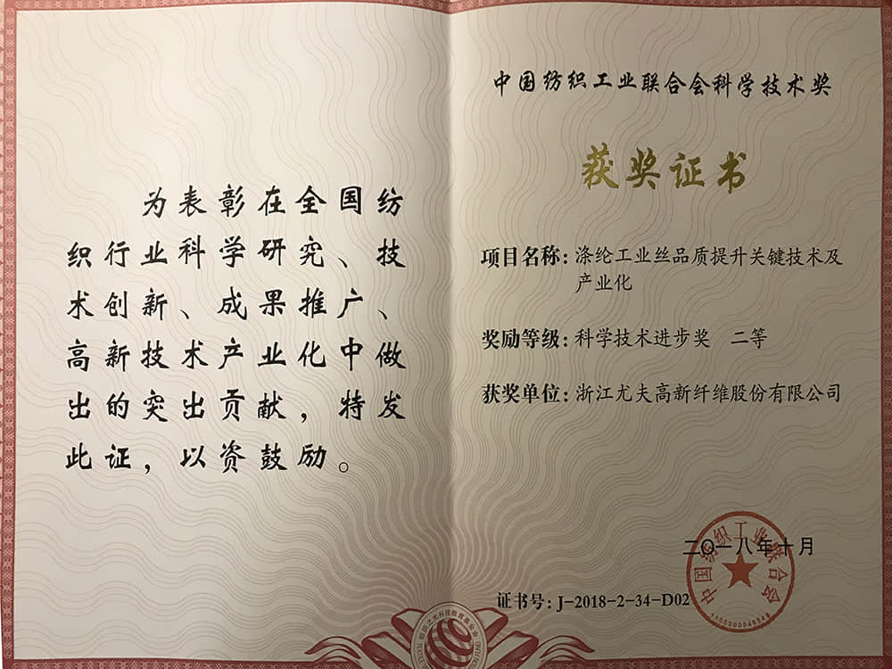 • 中國紡織工業聯合會科學技術獎二等獎2018.10